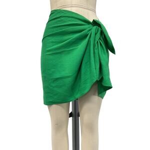 Aexae 'Sarong' Green Linen Skirt Size OS: unlined, wrap around waist side tie closure, semi-sheer.