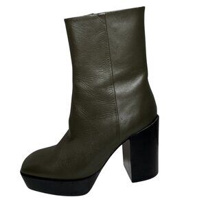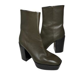 Aeyde Berlin Square Toe High Heel Platform Booties Women's 40/9 Olive NEW