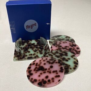 Aeyre by Valet Round Acrylic Coaster Set in Pink & Turquoise Spots