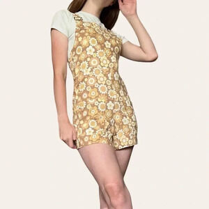 New with tags retro floral overalls by sustainable brand Afends. This is the “MJ Floral Hemp Playsuit” in Sienna. Yellow & white tone 70s inspired floral print hemp short overalls with front pockets, a side zipper, and adjustable straps that cross in the back. Lightweight and perfect for summer. This style is sold out! This is brand new & never worn with original tags still attached! Can be styled so many different ways!