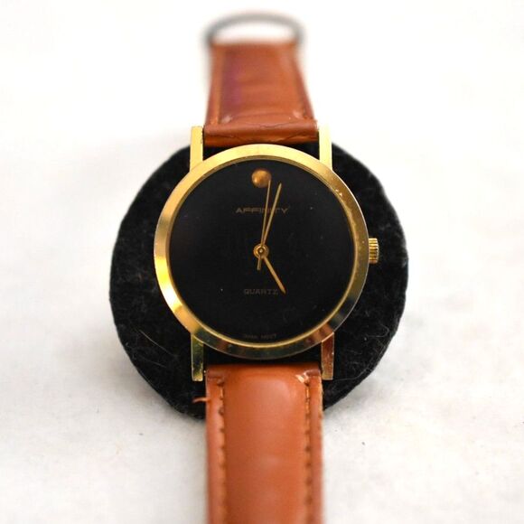 Affinity Casual Classic Black Face Gold Tone Brown Band New Battery Watch Like New Work Great