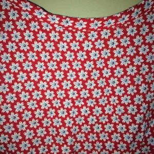 Red dress with blue and white flowers. Excellent used condition, size medium- would also fit small