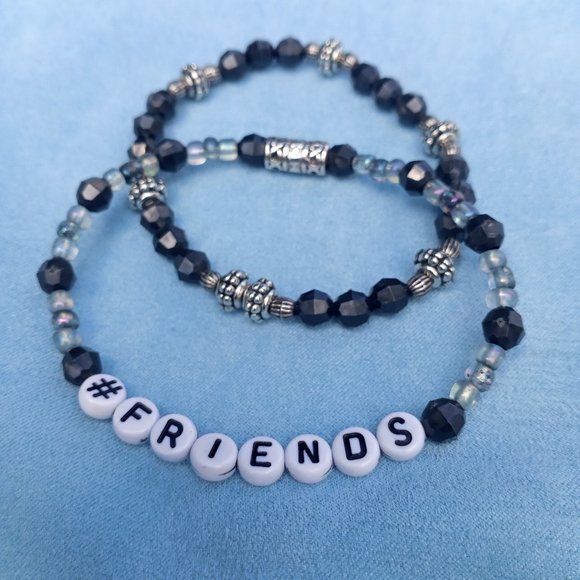 Friendship in black and white. It's fun. It's unique. These braclets were created with the minimalist style lovers in mind. Wear them while running errands on a Saturday morning. Pair them with jeans and a white tee shirt. Set is newly designed. Looking for a first time owner. Set is made with antique silver and glass microbeads.
