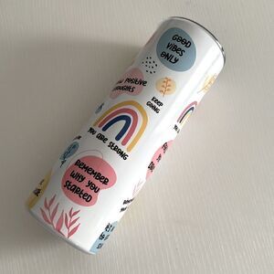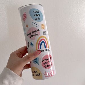 Keeps hot drinks hot and cold drinks cold. Comes with a lid and straw.