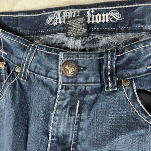 Affliction 36W 34W Dark Wash Studded Jeans Denim Back Pocket Detail Y2K