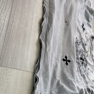 Nice shirt it has a bit wear and tear on the front from the washer it got stuck to something and made tiny holes otherwise great shirt