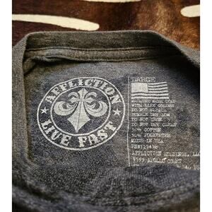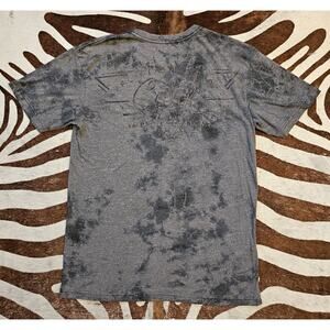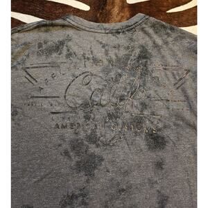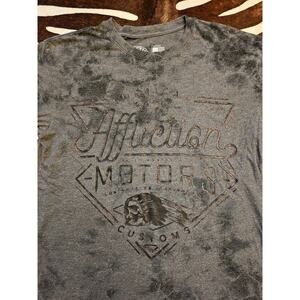 This is a pre-owned Affliction AC Cali Motors A18488 men's short sleeve T-shirt in charcoal and black.