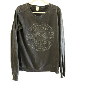 Affliction Black Distressed Back Cut-Outs Mesh Sweatshirt Size XL