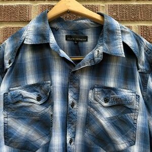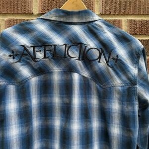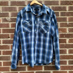 Affliction Black Premium Back logo Long Sleeve Blue Plaid Button Shirt Size L