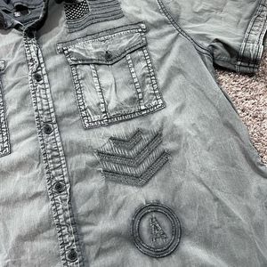 Affliction Black Premium Eagle Wing Button Stretch Shirt Mens Size XL Graphite