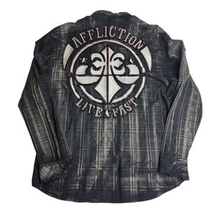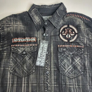 Affliction Black Premium Embroidered Stitched Button Shirt Men's Size 2XL New