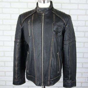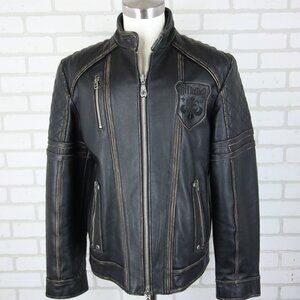 Affliction Black Premium Limited Leather Jacket Mens L fits Slim Cross Back Moto