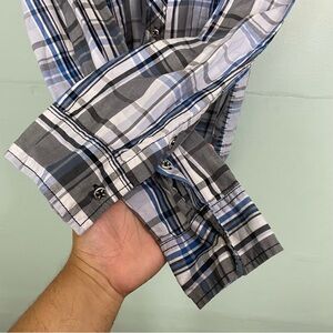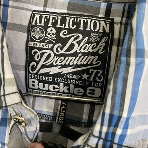 Affliction Blue Black Plaid Button Down Shirt Mens XL