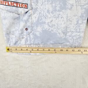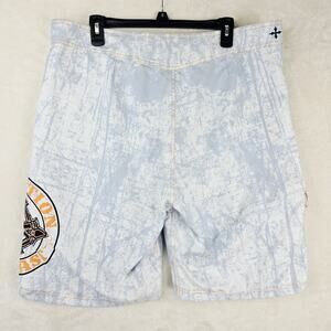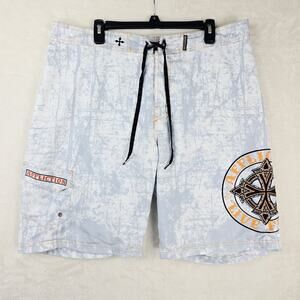 Affliction Board Shorts Mens 38 Gray White Cement Splatter AOP Logo Y2K Grunge