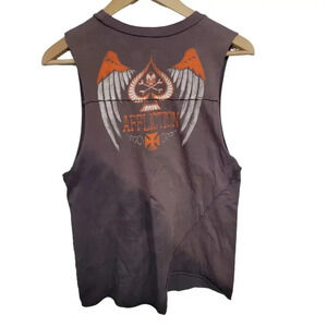 Affliction Brown Orange Ombre Studded Angel Wings Tank Top XS