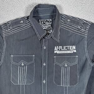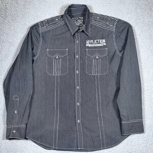 Affliction Button Down Long Sleeve Mens Large Grunge Streetwear Embroidered Gray