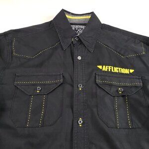 Affliction Button Front Embroidered Shirt Mens Large Black Long Sleeve Casual