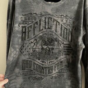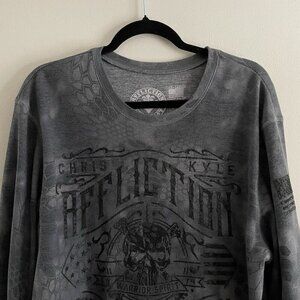 Affliction Chris Kyle Live Fast Men SZ 2XL Gray Long Sleeve Waffle Knit Shirt