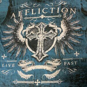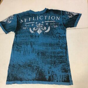 Affliction Cross Shield Distressed T Shirt Blue NO SIZE TAG SEE PICTURES