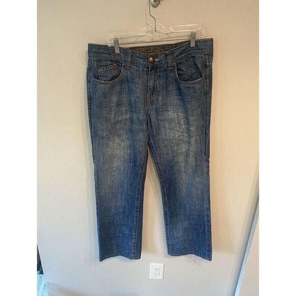 Affliction Denim Jeans Mens 36x30 Blue Distressed SP