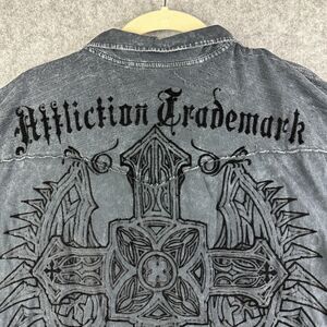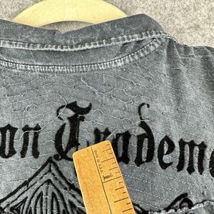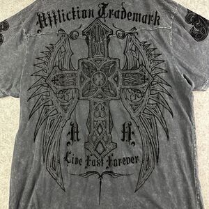 Affliction Distressed Polo Shirt Mens XL Gray Distressed Cross Wings Graphic*