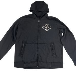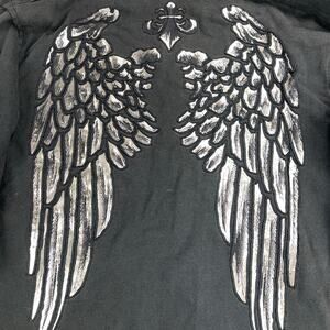 Affliction Full Zip Gothic Hoodie Sweatshirt Black Silver Angel Wings Size 2XL