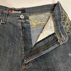 Affliction Gold Embroidered Cutoff Denim Shorts Men’s 34 Raw Hem Distressed