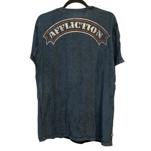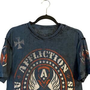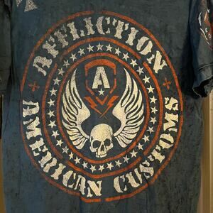 Affliction Graphic T-shirt 2 Sided Cotton Blend Skull & Wings Mens Streetwear