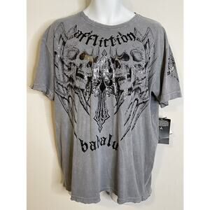 Affliction Gray Skull T Shirt NWT XL Babalu Renato Sobral Skater Streetwear Goth
