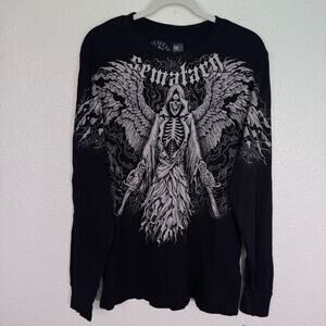 Affliction Haunted Mound Shirt Mens XL Sematary Massacre Thermal Skull Wings
