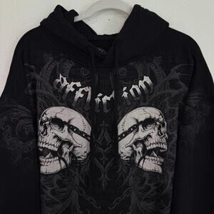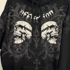 Affliction Hoodie Mens 2XL Skeleton Skull Graphic Pullover Gothic Grunge NEW