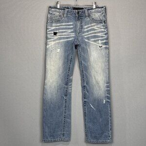 Affliction Jeans Mens 33 Blue Blake Relaxed Straight Distressed Light Wash Denim
