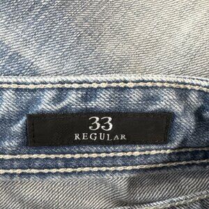 Affliction Jeans Mens 33 Regular Blue Blake Relaxed Straight Distressed Light Wash Denim