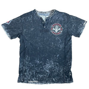 Affliction Life Fast Men's T-Shirt Size M Buttons Embroidered Black Shirt Cross