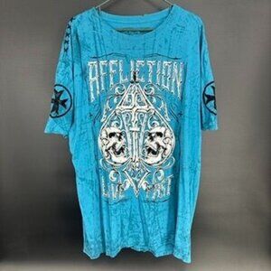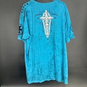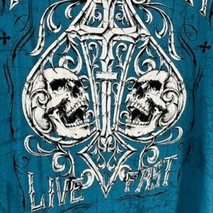Affliction Live Fast Skulls MMA UFC Jiu Jitsu T Shirt Size 3XL Blue