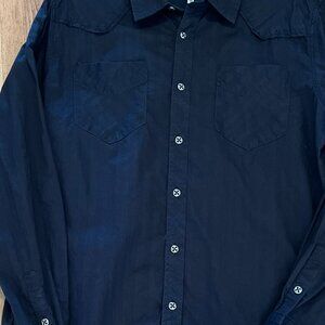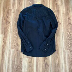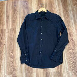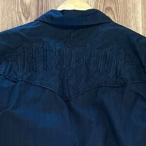 Affliction Men's Black Back Embroider Spellout Goth Button Front Shirt Sz Med