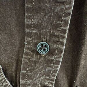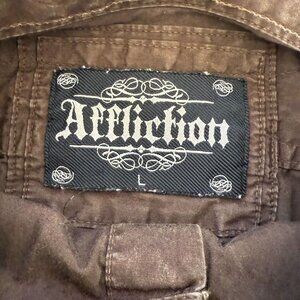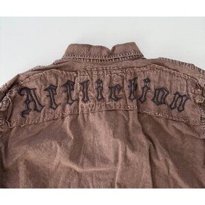 Affliction Mens Brown Long Sleeve Button-Up Shirt Cross Graphics Size Large