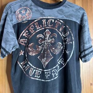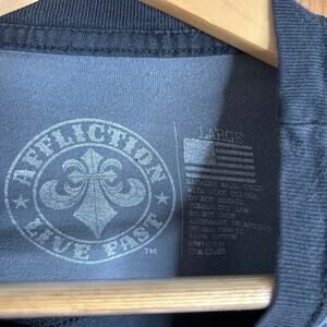 Affliction Mens Divio Vrnsh T-Shirt Large Black Live Fast Y2K Skull Grunge FLAW