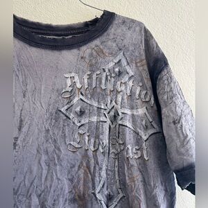 Affliction Mens Gray Graphic T-Shirt Live Fast Cross Scull Grunge Punk Rock Sz L