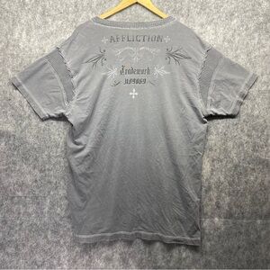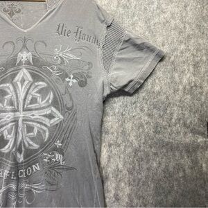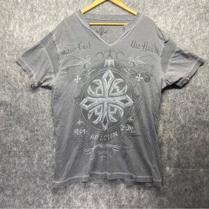 Affliction Mens Gray/White Short Sleeve Crew Neck Graphic T-Shirt Size 3XL