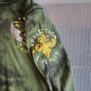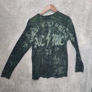 Affliction Men's Medium Reversible Graphic Long Sleeve Skull Shirt