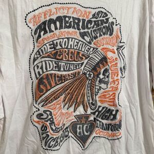 Affliction Mens Vintage Look AC Outlaw Orange White Gray T Shirt 2XL