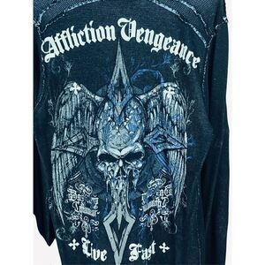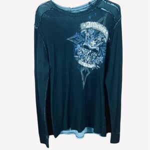 Affliction Mens Black Reversible Thermal Wings Skull Graphic T-Shirt Medium