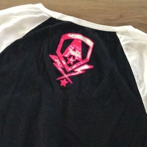 Raglan sleeves, flocked neon graphic, 3/4 sleeves