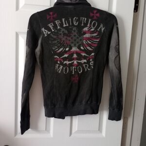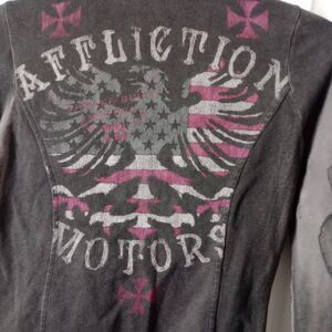 Affliction Motors Jacket Womens Gray Spell Out Zip up Size Medium Zippers