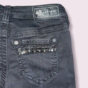 Affliction Raquel Low Rise Black Skinny Jeans Beaded Denim Womens Size 25
