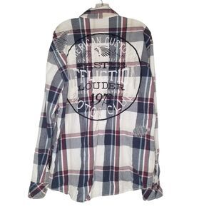 Affliction Shirt Men’s XL Black Premium Plaid Embroidered Button Up Live Fast