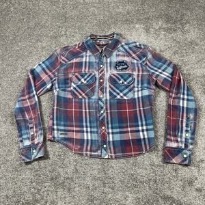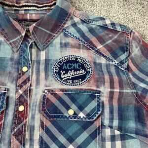 Affliction Shirt Womens Small Snap Motors Biker Western Button Up Plaid