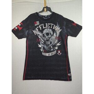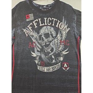 Affliction T-Shirt Built For Speed Black Skull Wings Men's size 3XL Distressed