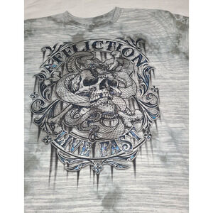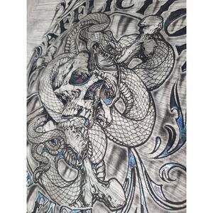 Affliction T-Shirt Mens 2XL Skull & Cross Bones Snake Gray Biker Y2K MMA